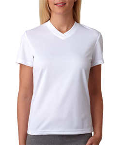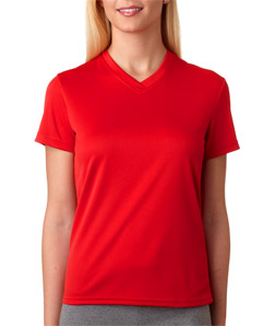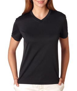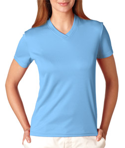 Design ladies personalized UltraClub moisture wicking t-shirts at Impressionz Printing. Create your own custom performance v neck shirts for girls wear.